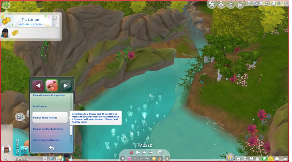 Any guess for how to do this one? Yep, it’s in your phone’s Social menu. I almost missed this one myself, along with the Fitness Retreat, since they’re hidden after the Funerals option. So, if you have Life & Death installed, look out for that.